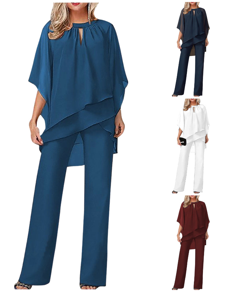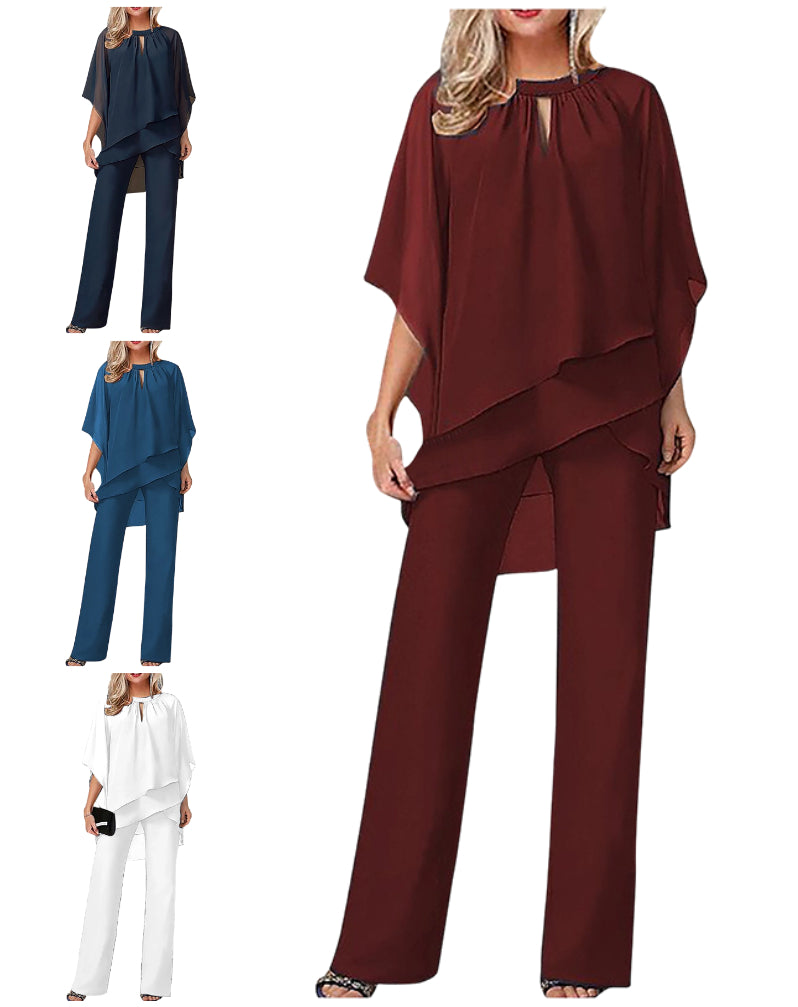 ЕЛЕГАНТЕН ДВУЧАСТЕН ДИЗАЙН – Комбинация от лека, платна блуза и панталони с широки крачоли в същия цвят. Този съчетан комплект предлага изтънчен, хармоничен вид с минимални усилия, което го прави идеален за всяко събитие, на което искате да направите впечатление.