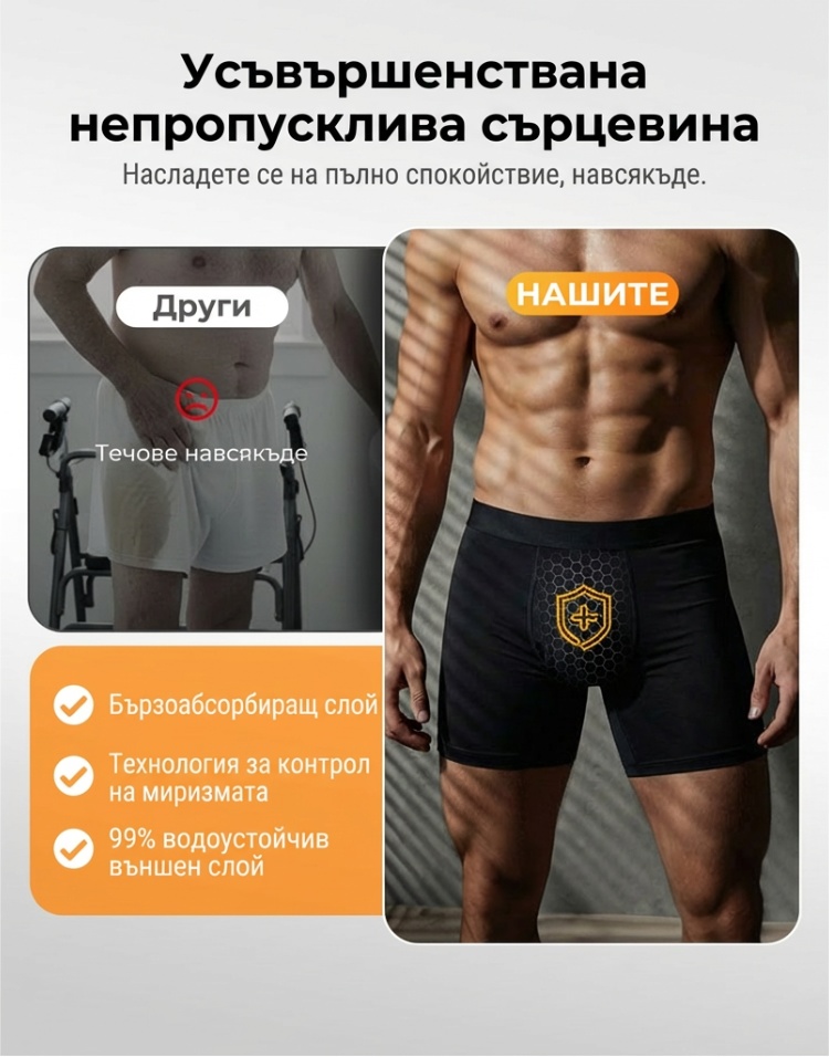 Мъжки ултра-абсорбиращи боксерки за инконтиненция