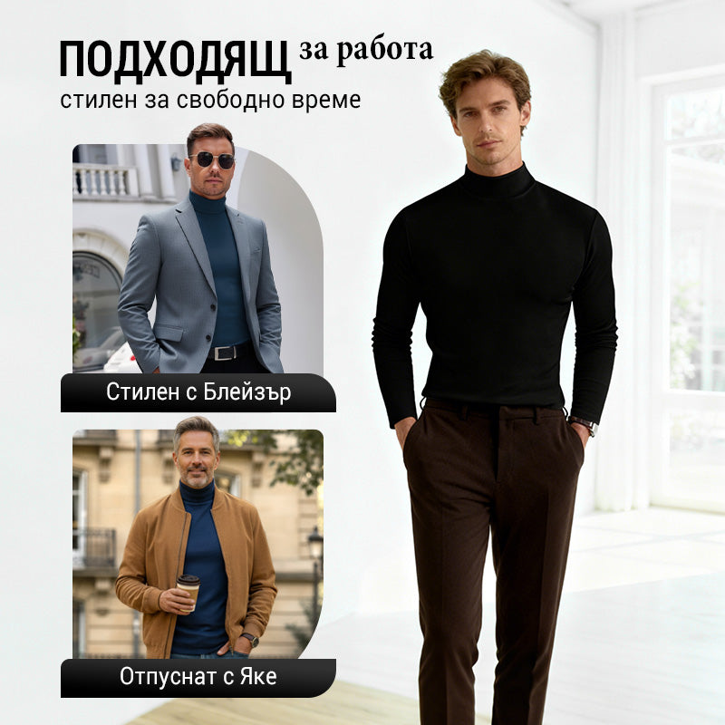 Мъжка тениска с дълъг ръкав и тънко деколте