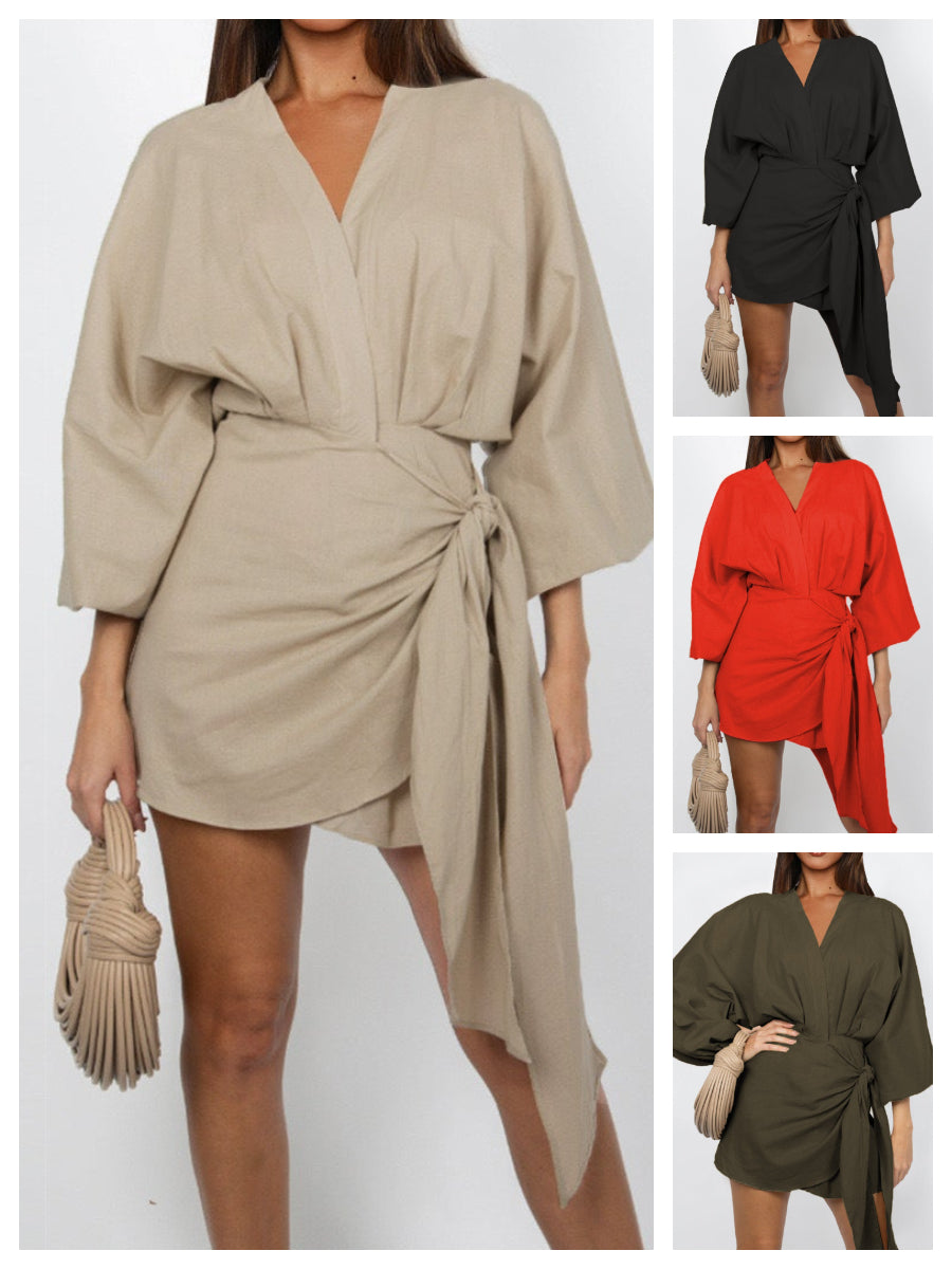 ЗАБЛУДЯВАЩ ДИЗАЙН С V-ОБРАЗНО ДЕКОЛЬТЕ: Роклята е с привлекателно V-образно деколте, което подчертава деколтето ви и създава ласкава силует. Стилът с прегъване позволява лесно регулиране, за да се постигне перфектно прилягане, което ви гарантира уверен вид и самочувствие през целия ден.