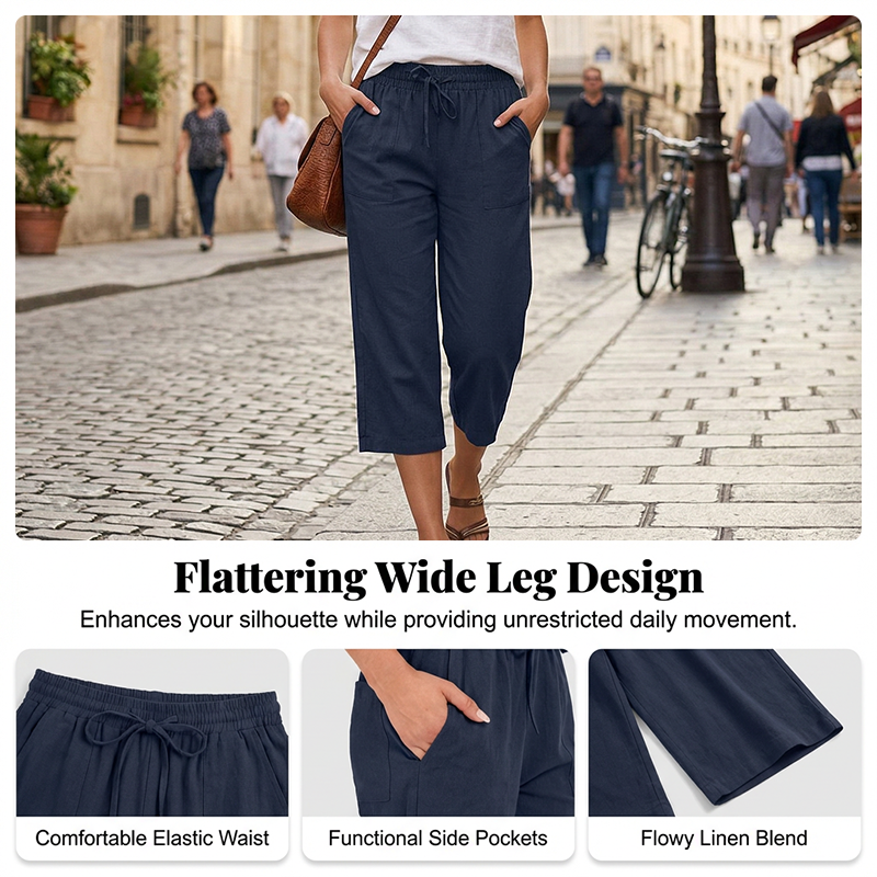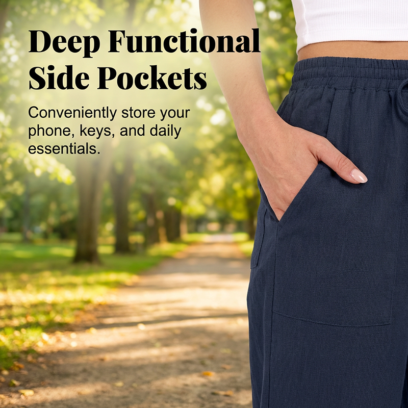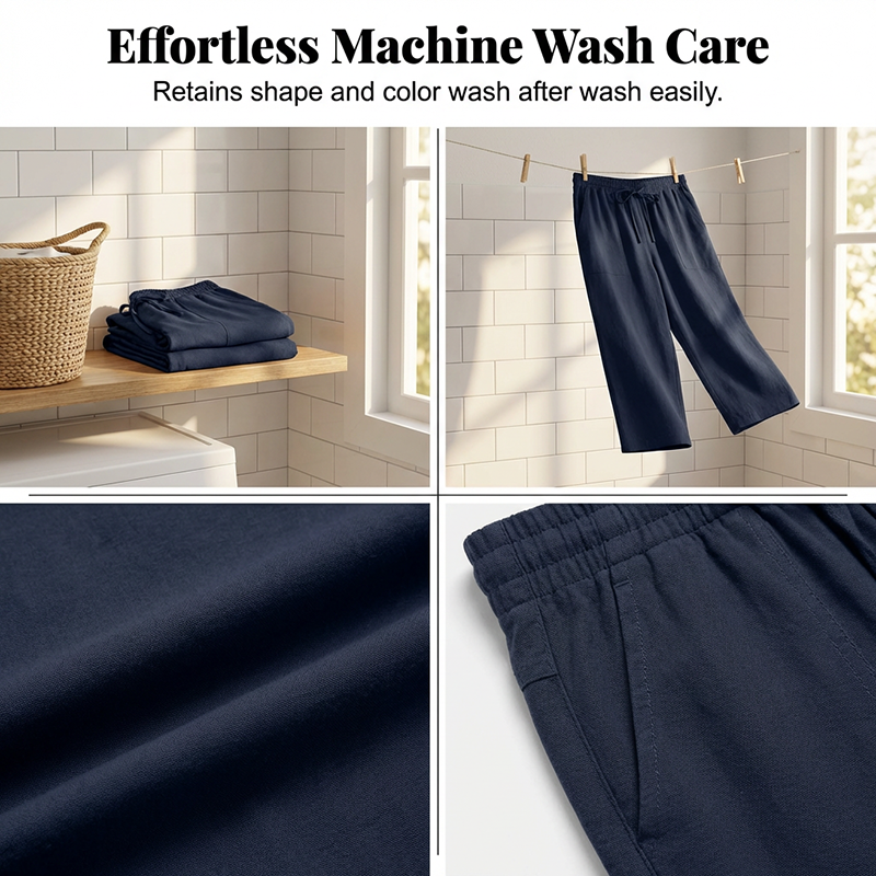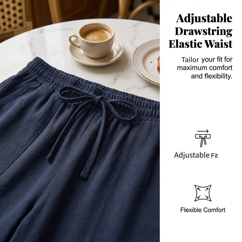 ПРЕМИУМ СМЕС ОТ ЕСТЕСТВЕНИ ТЪКАНИ - Изработени от висококачествена смес от памук и лен, тези панталони предлагат изключителна дишаемост и мекота. Естествените влакна гарантират леко усещане, което трае цял ден.