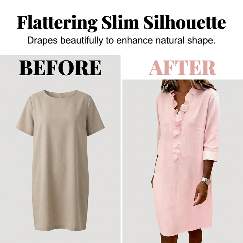 ПРЕМИУМ ДИШАЩА ТЪКАН - Изработена от висококачествена смесена текстилна тъкан, тази рокля осигурява максимална дишаемост и комфорт. Приятната за кожата текстура ви поддържа свежи от сутрешните пътувания до вечерните разходки.